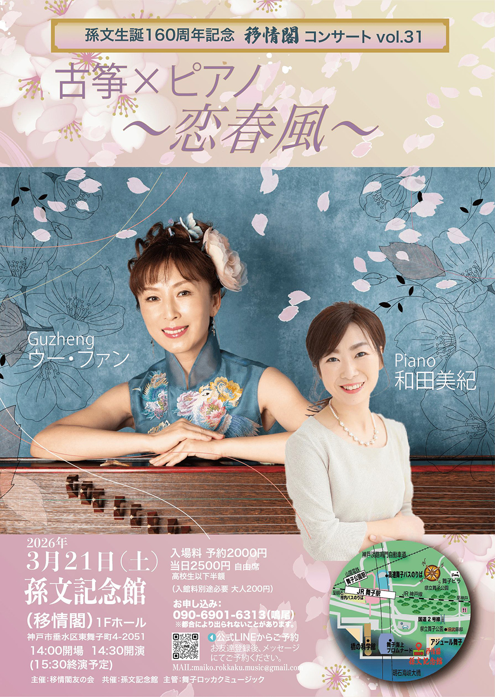 2026年3月21日(土)孫文生誕160周年記念 移情閣コンサートvol.31 古筝×ピアノ~恋春風~ウー・ファン&和田美紀
